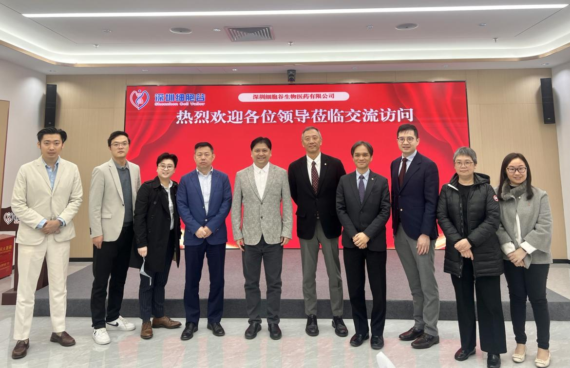 On the morning of December 16, a delegation from the General Office of the Hospital Authority of the Hong Kong Special Administrative Region, including Dr. Xie Dazhi , Senior Administrative Manager of the Integrated Clinical Services Department, Ms.Ou Kunye, Manager of the Clinical Services Department, Ms.Yang Huimin, Senior Pharmacist of the Hospital Authority, Dr. Chen Shouren, Consultant in Hematology at Queen Mary Hospital, The University of Hong Kong, Dr. Wang Shaoming, Consultant in Hematology at Prince of Wales Hospital, The Chinese University of Hong Kong, and Dr. Liu Shimin, Consultant in Hematology at Queen Elizabeth Hospital, visited Shenzhen Cell Valley for an exchange visit. The delegation was warmly received by our company's Chairman Professor Shi Yuanyuan, Chief Scientist Professor Wang Jianxun, Business Director Wei Zheng, Chairman's Assistant Fu Yuchen, Marketing Director Sun Rui, and Director of the General Office Wang Lu.