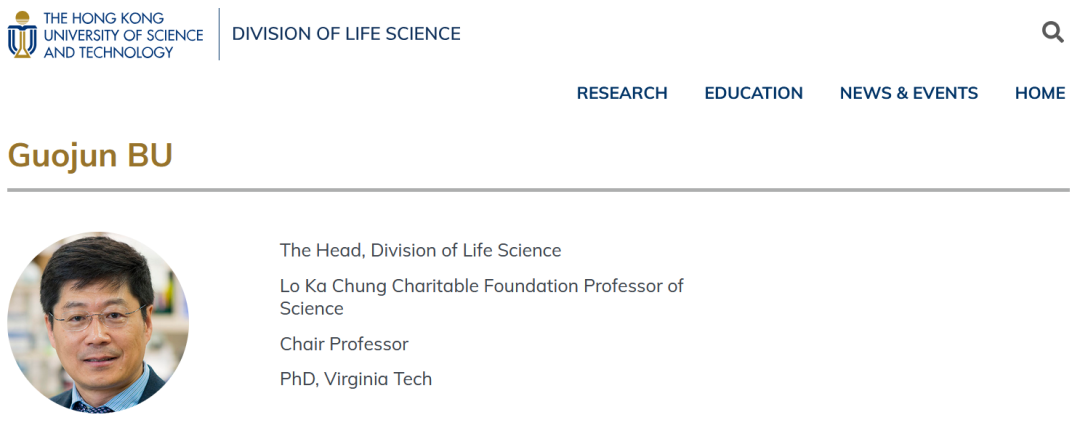 (卜国军教授在香港科技大学官网介绍截屏)