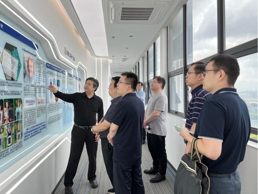 The leadership of Daxing District of Beijing, accompanied by Chairman Shi Yuan, visited the administrative office area, production workshop and R&D laboratory of Shenzhen Cell Valley, and learned about the company's founder team, enterprise development history, CAR-T history, service platform construction, South China Cell factory project scale, laboratory and production workshop layout.